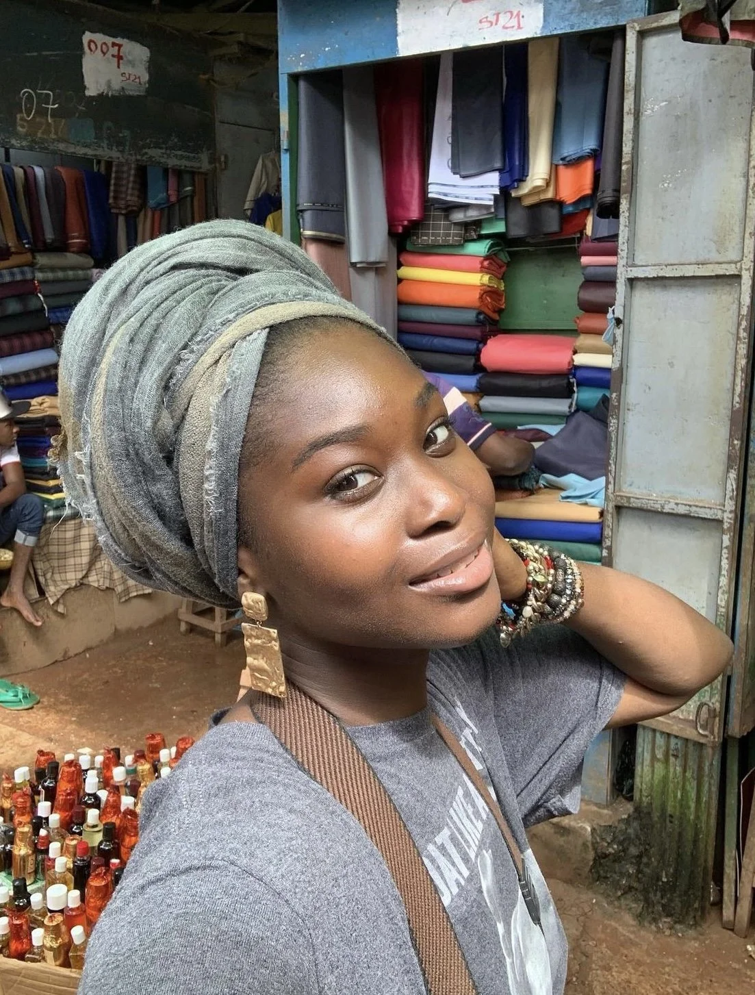 Madina is Guinea’s largest market, where one can find a plethora of items from all over the world. Fofana and her family drove about 40 minutes through Conakry’s bustling streets to the market where they searched through thousands of textiles for their dresses.